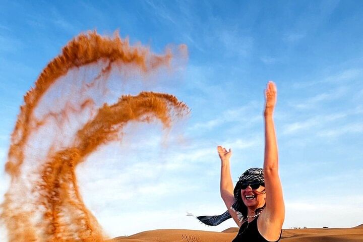Along with your guides, start to climb and conquer the dunes as your convoy traverses the sand. If you're feeling extra adenturous, take a break and try your hand at sandboading to experience another exciting activity.